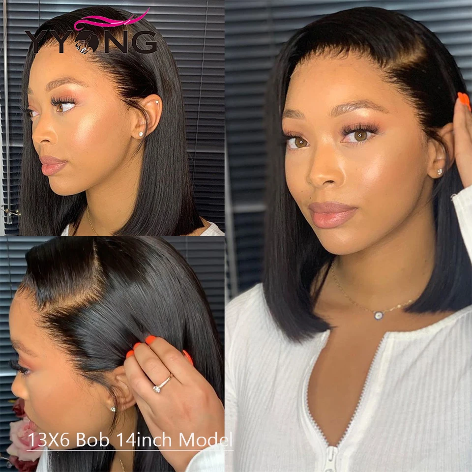 YYongHair короткий Боб Синтетические волосы на кружеве парики из натуральных волос с Африканской структурой, 13X4 13X6 Синтетические волосы на кружеве парик человеческих волос Прямые предварительно парик шнурка Корабль из США