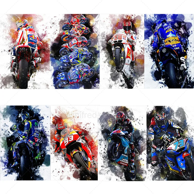 Алмазная 5D картина мотоцикл, гонщик, акварель, Алмазная мозаика сделай сам, полная выкладкакруглая Алмазная вышивка крестиком Стразы