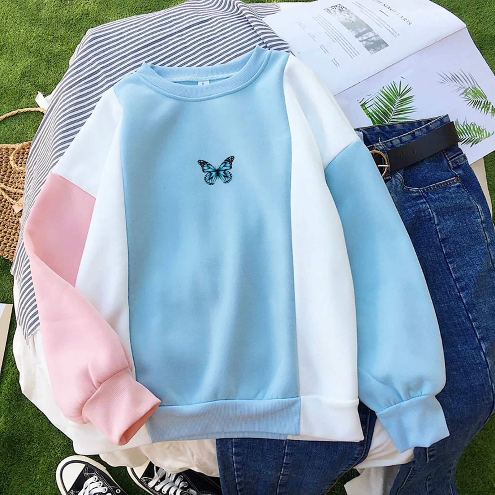Женская толстовка с принтом бабочки, модные топы для подростков, женские толстовки, спортивный костюм, винтажный свитшот, одежда с принтом в виде галстука