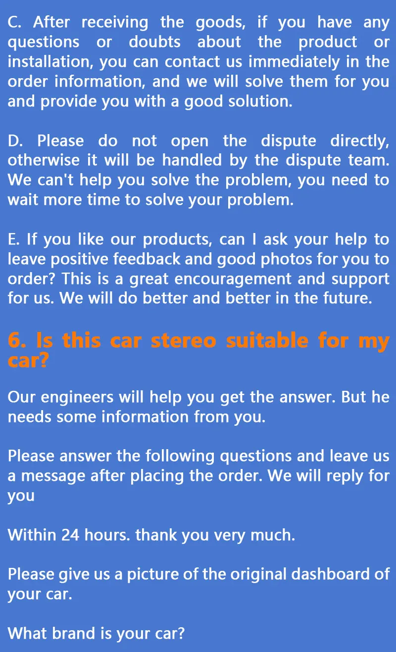 Таможня покупателя будет взимать пошлину на пропорциональной основе. Покупатель должен оплатить пошлину.2. Клиентам из Саудовской Аравии и Индии необходимо предоставить фотографии удостоверений личности.3. Бразильским клиентам необходимо предоставить налоговый код.4. Пожалуйста, оставьте сообщение перед размещением заказа:(1) какая модель и год вашего автомобиля?(2) Пожалуйста, пришлите мне изображение оригинального автомобильного радио и дайте мне проверить, подходит ли он?Примечание: наш продукт имеет установочную документацию. Если вы покупаете этот товар в нашем магазине, мы отправим его вам после доставки.Продукт подходит для: Mini R55 R56 R57 R58 R59 2007-20101. Поддержка операционной системы: Система Android 11.2. Поддержка 4 Гб оперативной памяти (3 Гб)(8 ГБ)3. Поддержка 64 Гб Rom.(32 Гб)(128 ГБ)4. Поддержка процессора: 8 ядер5. С 2.5D IPS экраном6. 4 Гб + 64 ГБ и 6 ГБ + 128 ГБ версия встроена в carplay,DSP.7. Поддерживает емкость нескольких сенсорных экранов.8. Наши кабели подключи и работай. Нет необходимости резать оригинальный автомобильный кабель.9. Поддержка разделенного экрана.10. Поддержка оригинального автомобильного кондиционера, функции подогрева сидений.11. Поддержка функции вентилятора охлаждения.12. Поддержка оригинальной автомобильной камеры.Характеристика:1. Поддержка 9 дюймов цифровой экран.2. Поддержка подключения к телефону android и iPhone.3. Встроенная GPS навигационная система.4. Поддержка функции двойной зоны.5. Поддержка воспроизведения видео 1080P.6. Поддержка смены обоев.7. Поддержка высокой точности воспроизведения музыки.8. Встроенный WIFI приемник.