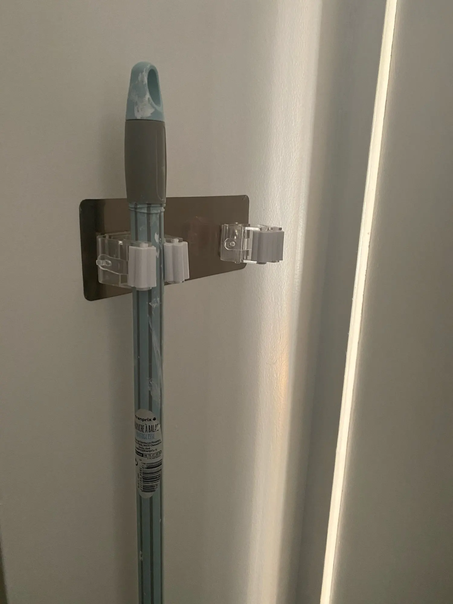 Этот товар можно разместить на стене с помощью швабры, меток и других спасательных инструментов с ручками.