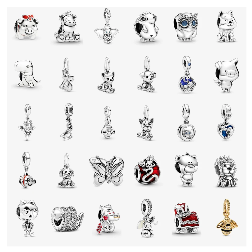 Женский кулон из серебра 925 пробы, кулон коала, Дамбо, пуделя, Акита, собака, подходит для оригинального шарма, браслет Пандора, бисер, изготовление ювелирных изделий