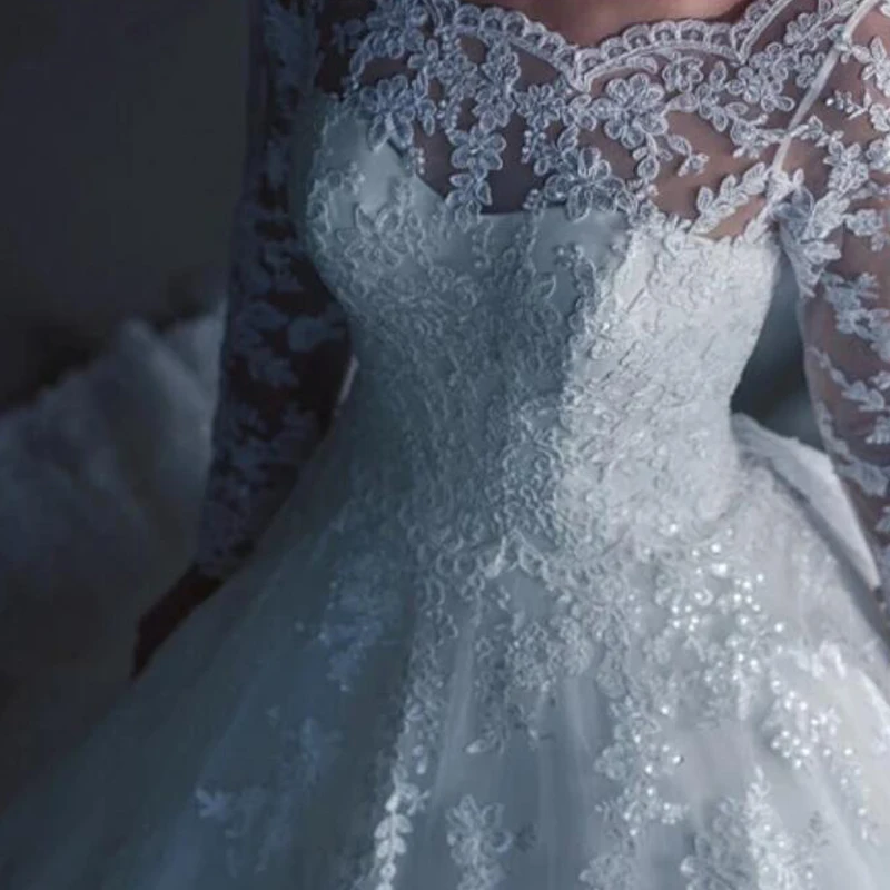Кружевное свадебное платье с длинными рукавами и аппликацией, сваде...
