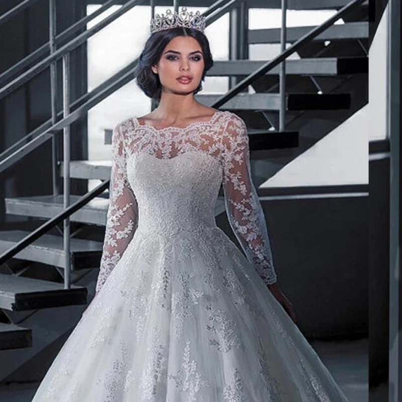 Кружевные свадебные платья A-line De Mariee, винтажные Свадебные платья с длинным рукавом, сделано в Китае, 2021