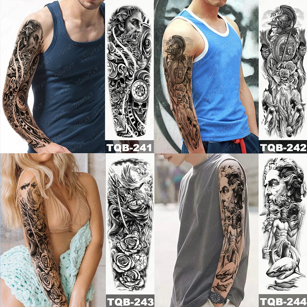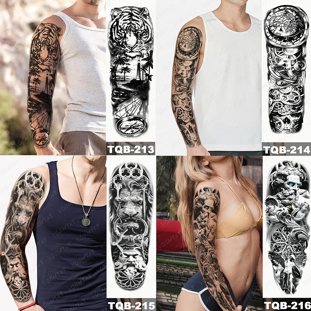Водостойкие Временные татуировки на всю руку, наклейки с большим пламенем, племенным тотемным цветком, мужские татуировки, боди-арт, искусственное тату для женщин