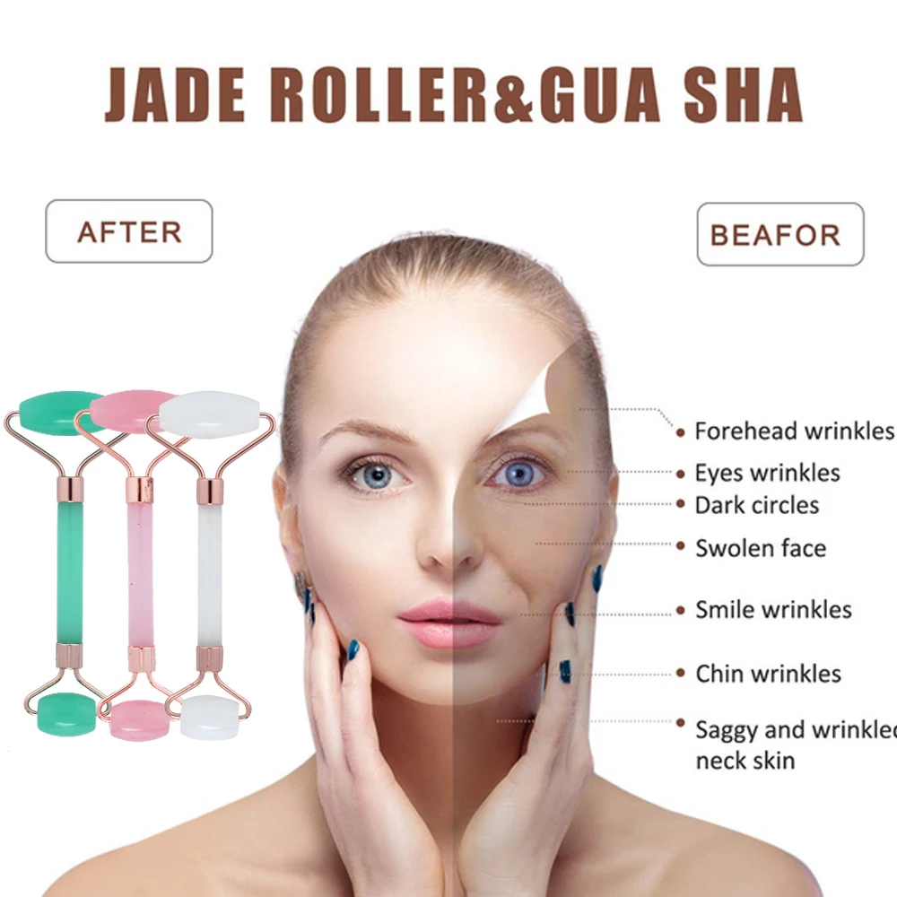 Натуральный каучуковый массажный ролик для лица и шеи, натуральный массажер для лица, набор скребков гуаша, инструмент для тонкого лифтинга и похудения
