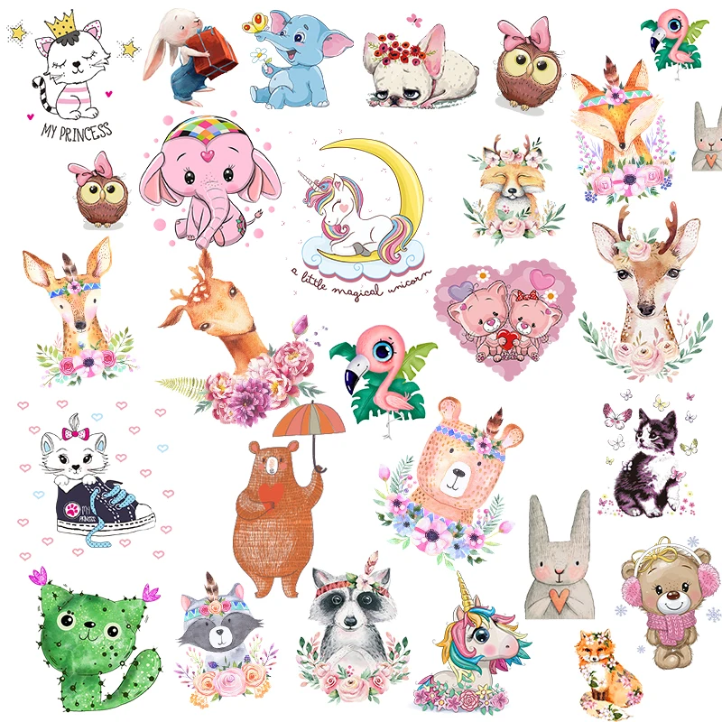 Много маленьких заплатки в виде животных для одежды мультфильм Единорог собака животные термо-Стикеры для одежды Утюг на переводе для одежды аппликация полосы