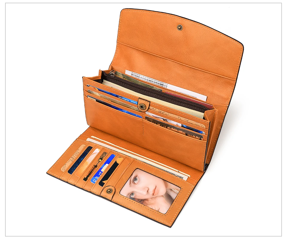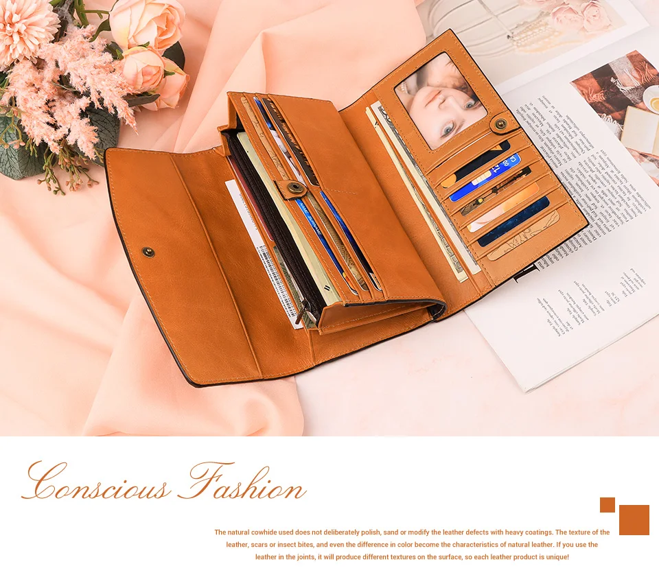 Модные женские кошельки с радиочастотной идентификацией, клатчи из натуральной кожи с сумкой для телефона, Дамский Длинный дизайнерский кошелек, новый женский высококачественный удобный кошелек