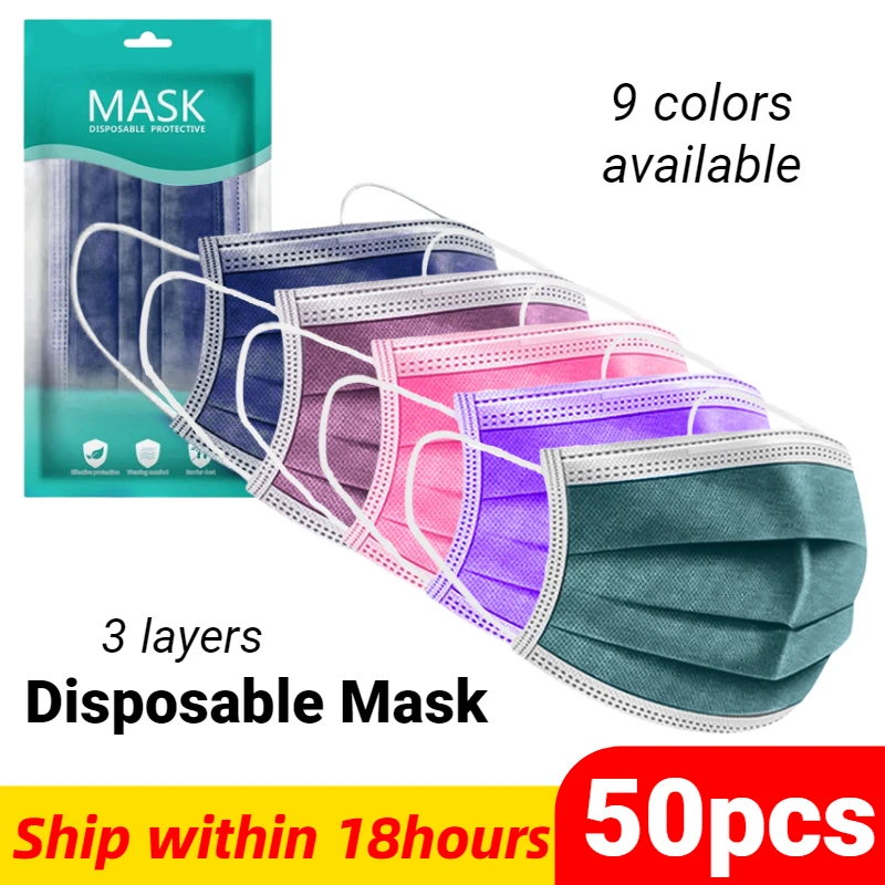 Маска одноразовая 3-слойная для лица, 1050 шт., 9 цветов