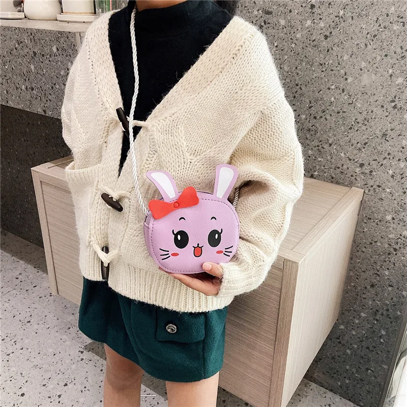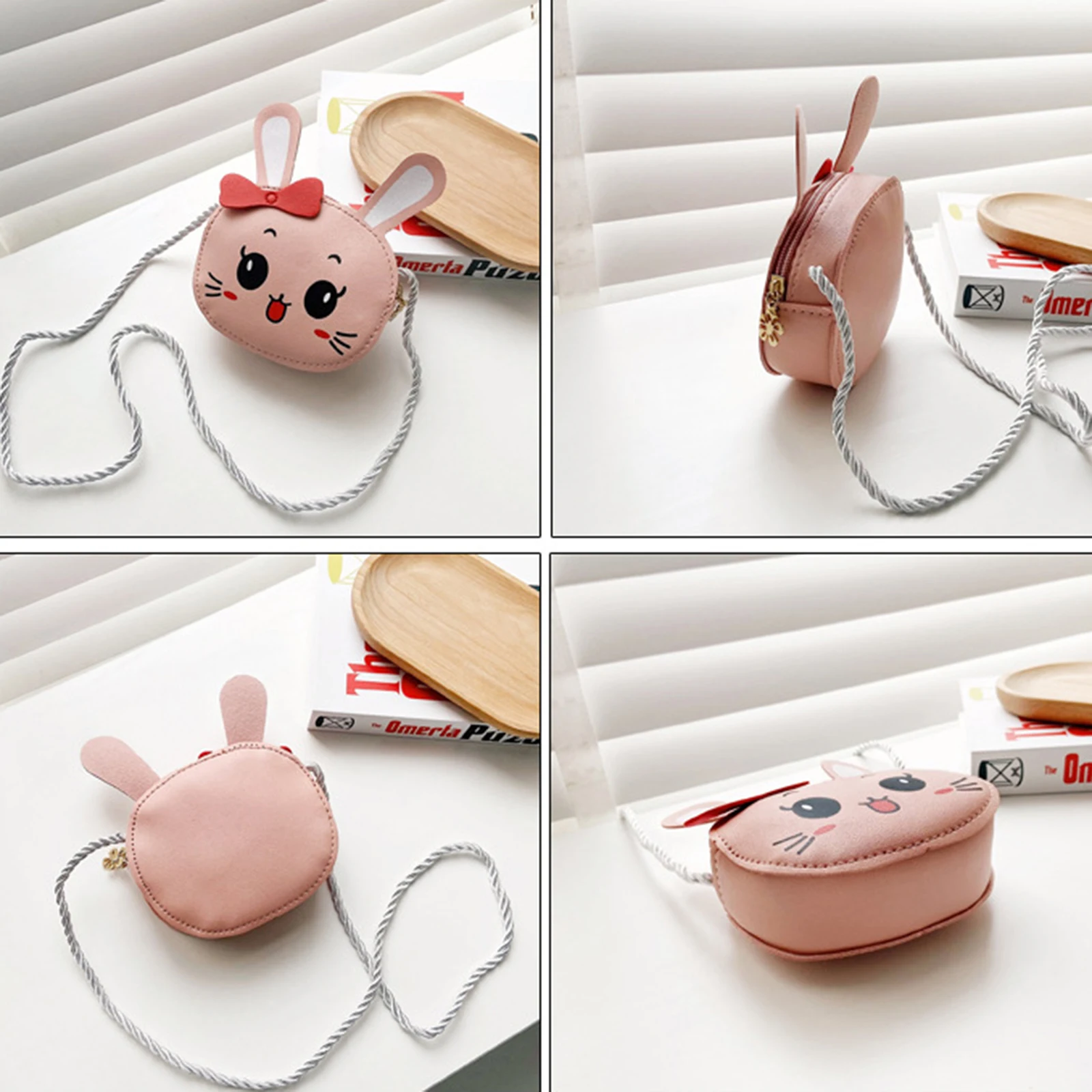 Детская Наплечная Сумка для девочек, милый мультяшный мешок из искусственной кожи с принтом кролика и бантом, квадратные карманные мессенджеры на молнии, 3 цвета