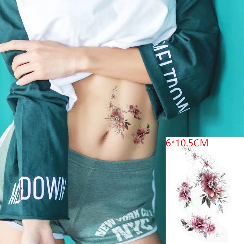 Водостойкая временная татуировка наклейка маленькая розовая роза цветок боди-арт флэш-Татуировка поддельная татуировка для женщин мужчин