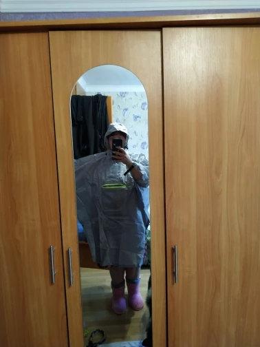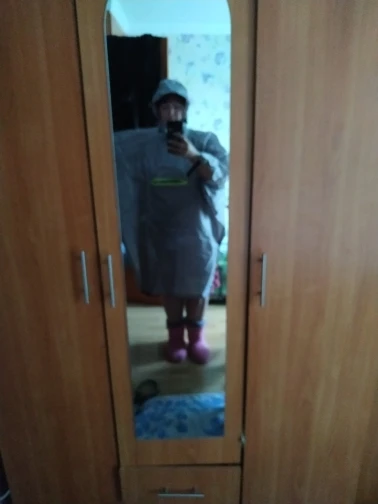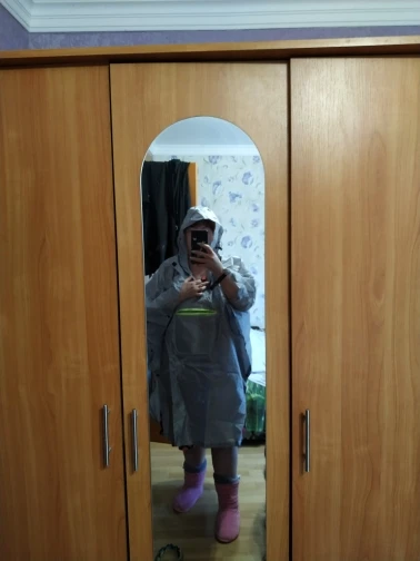 Дождевик шикарный,правда запах капец,но он выветрится,сумочка в котором дождевик это карман,по бокам кнопки,расстегнуть и можно стелить,чуть не выкинула пакет из под посылки,а на дне подарочек,зарядный проводок,мне на телефон не подходит,но наушники и пауэрбанк заряжать самое то.Доставка быстрая.