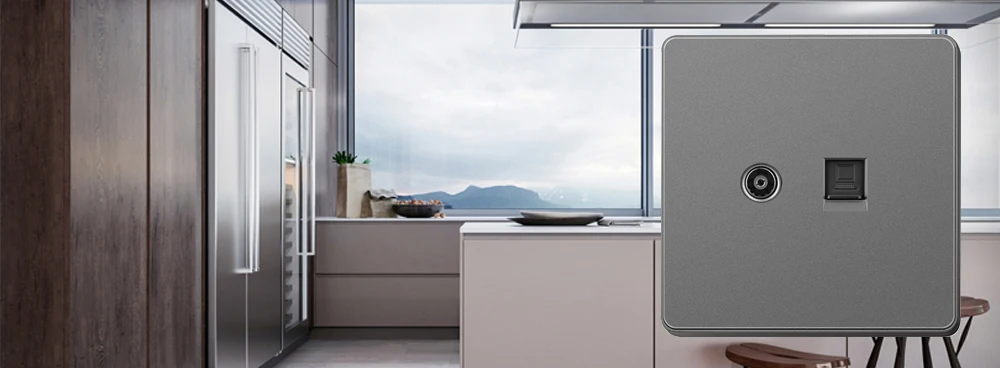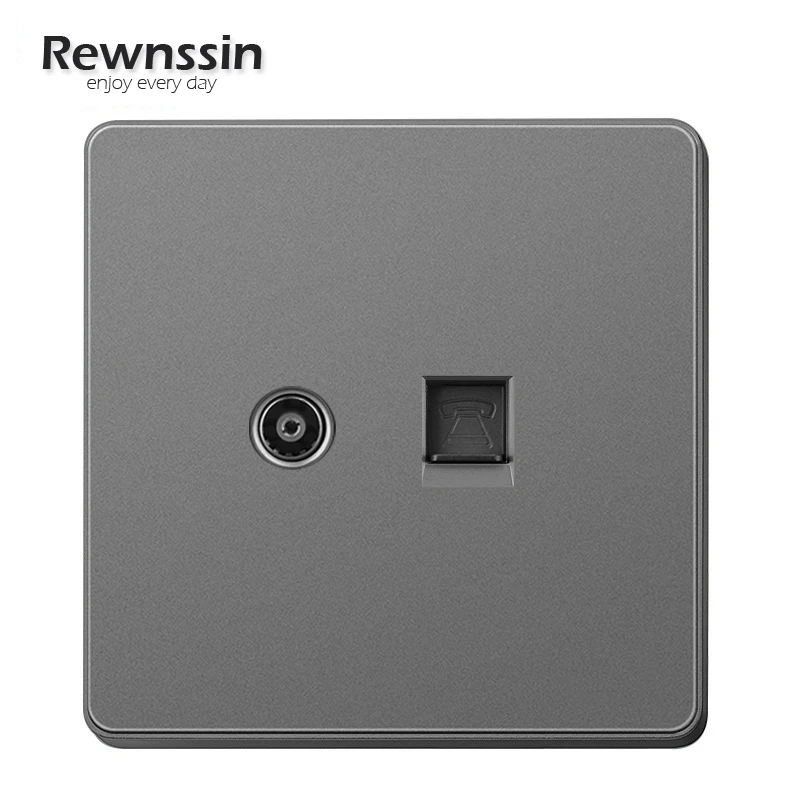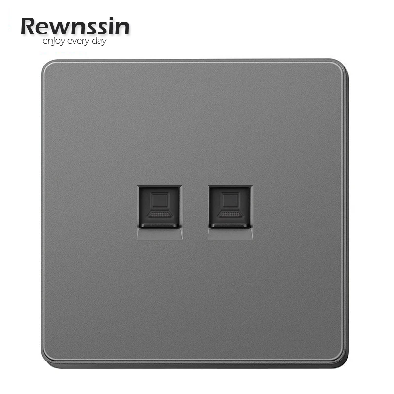 Двойное гнездо телефона RJ45 сети Порты и разъёмы данных настенная розетка для телевизора Интернет гнездо PC данных муфтовый стыковочный переводник Глубокий серый Пластик Панель