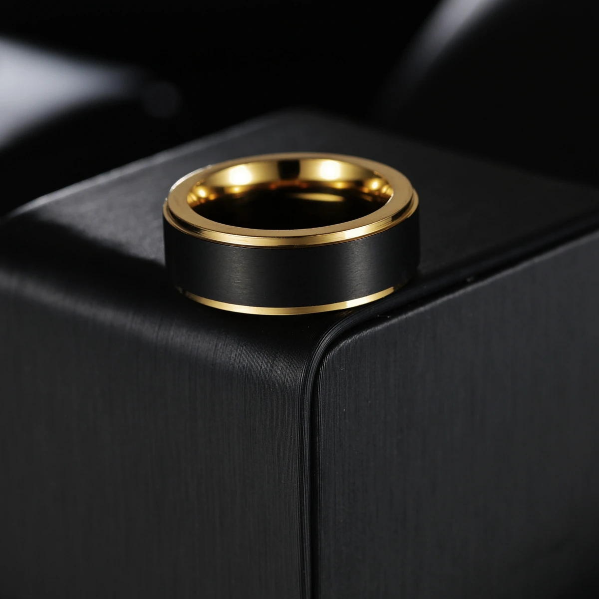 Кольцо вольфрамовое мужское кольцо черного и золотого цвета линии матовый 8 мм обручальное кольцо Обручение кольцо для мужчин вечерние ювелирные Bague Homme
