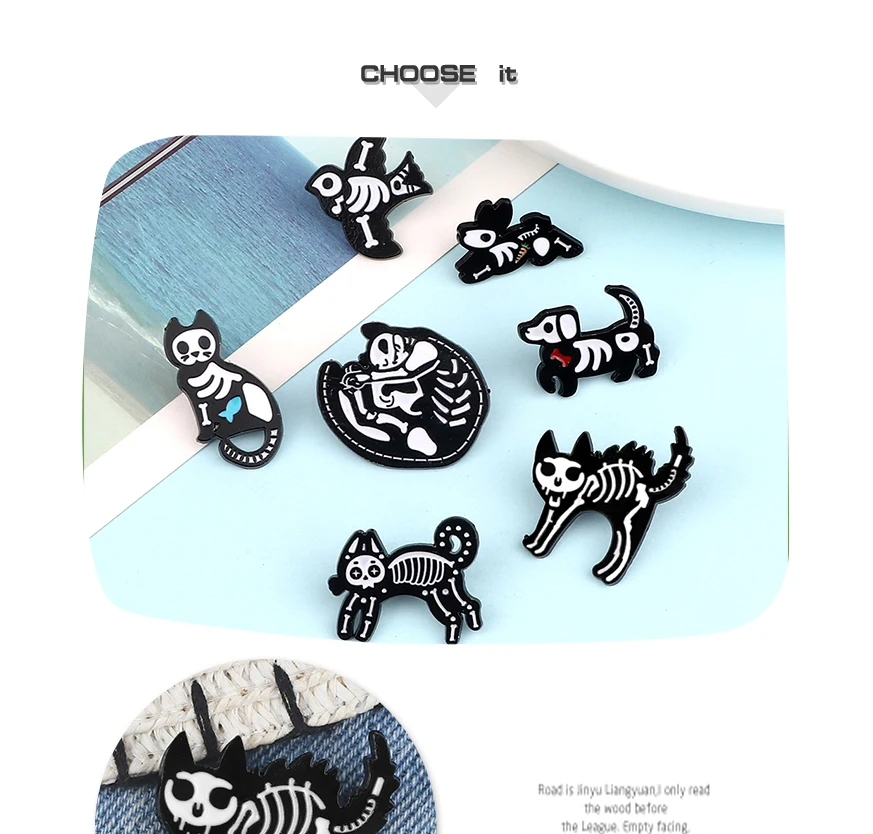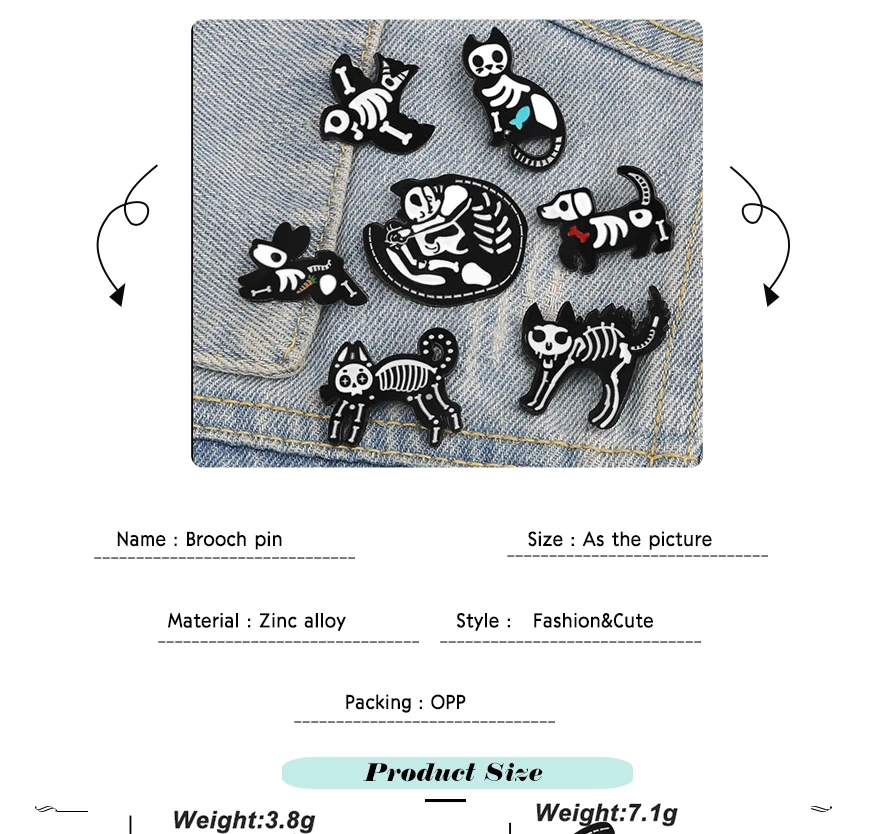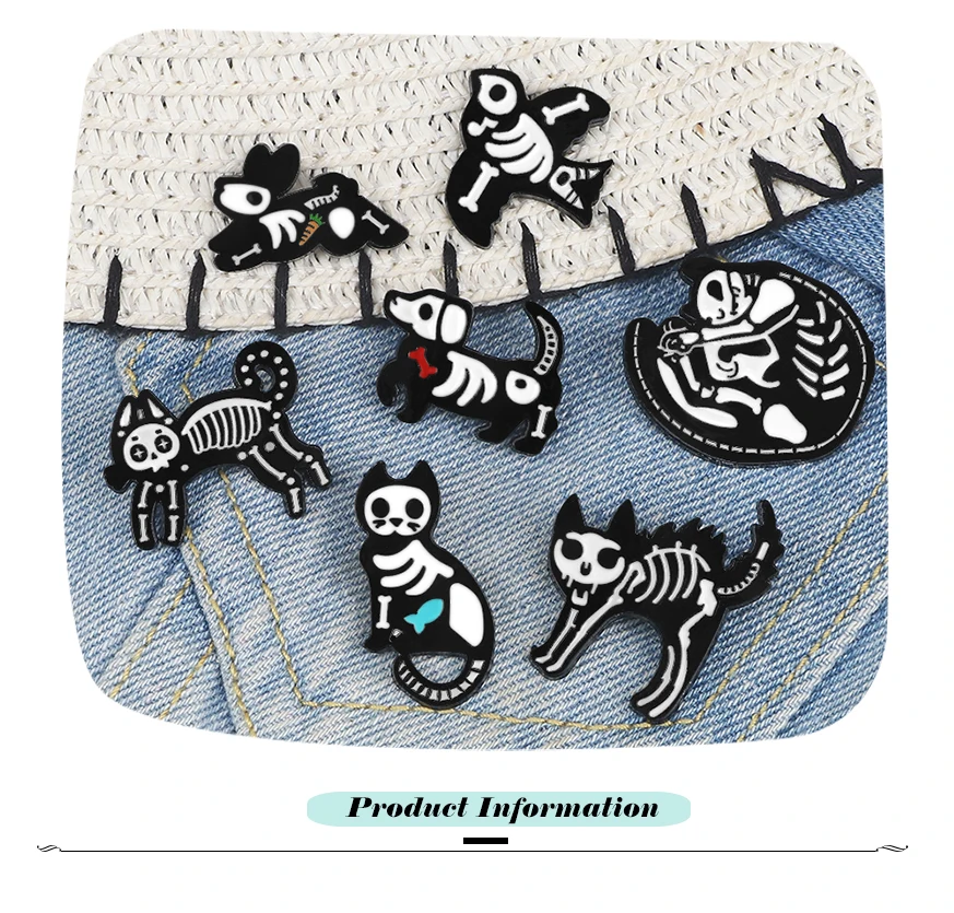 Винтажная брошь для детей, в стиле панк, с изображением животных, мультяшный милый котенок, скелет, для кошек, собак, кроликов, брошь на лацкан, джинсовый значок, ювелирные изделия, подарки для друзей