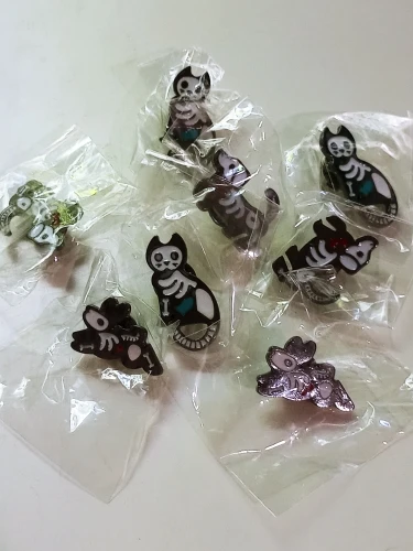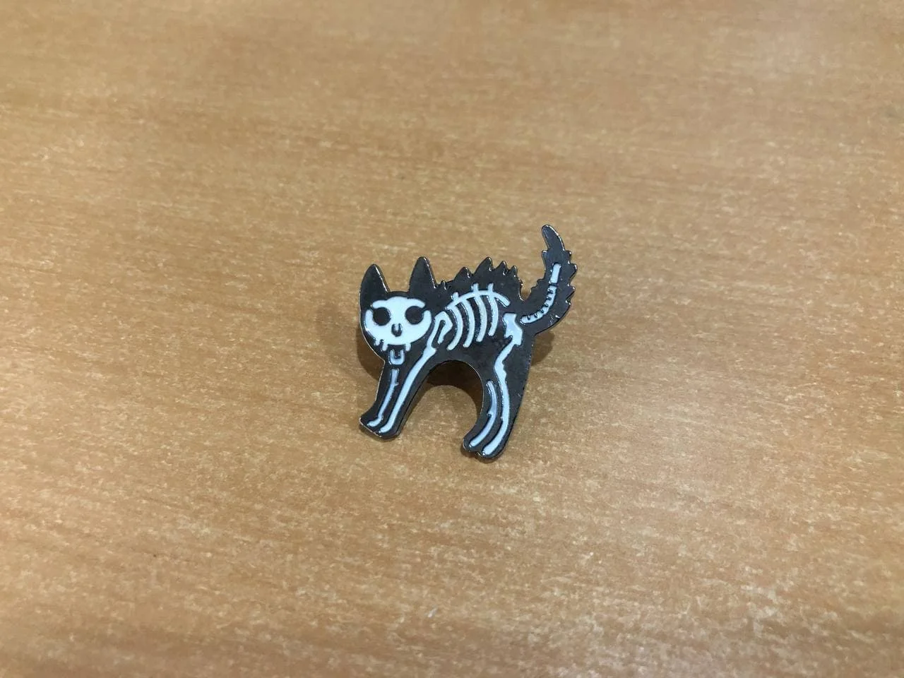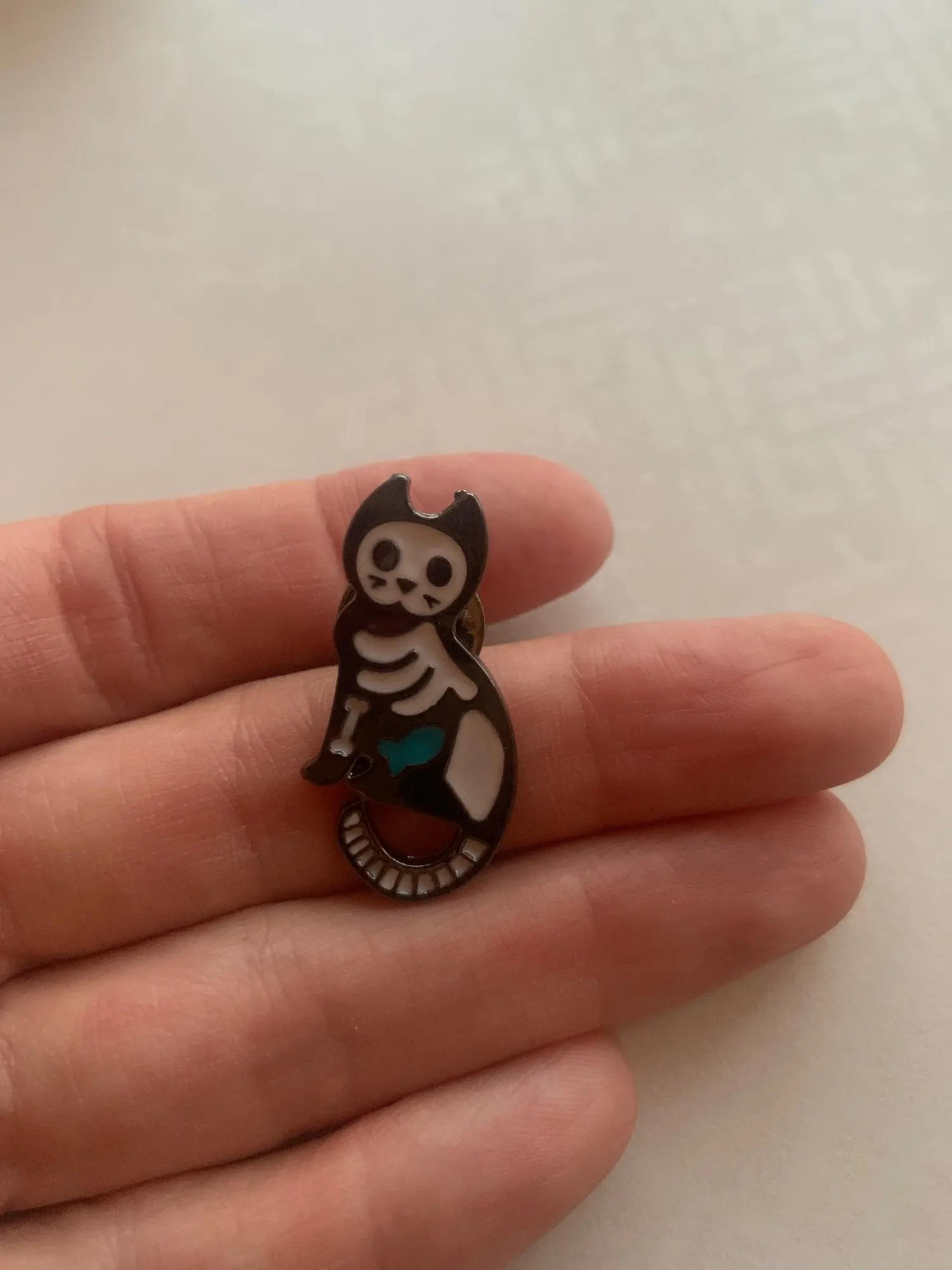 Llegó todo dentro del tiempo estipulado, el pin es de muy buena calidad, material duradero, exactamente igual a la descripción,. Pin con imagen de gatito de esqueleto con pescadito en su interior. Excelentemente envuelto y empaque sin daños en ninguna parte. Excelente servicio