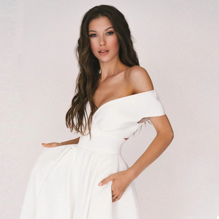 Короткое свадебное платье длиной ниже колена, простое мягкое атласное ТРАПЕЦИЕВИДНОЕ сексуальное платье с открытыми плечами и V-образным вырезом, размера плюс