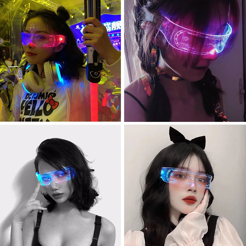 Светодиодный светильник очки футуристический козырек очки 7 цветов 5 режимов Батарея очки для Хэллоуина вечерние фестиваль Tiktok с классными очками