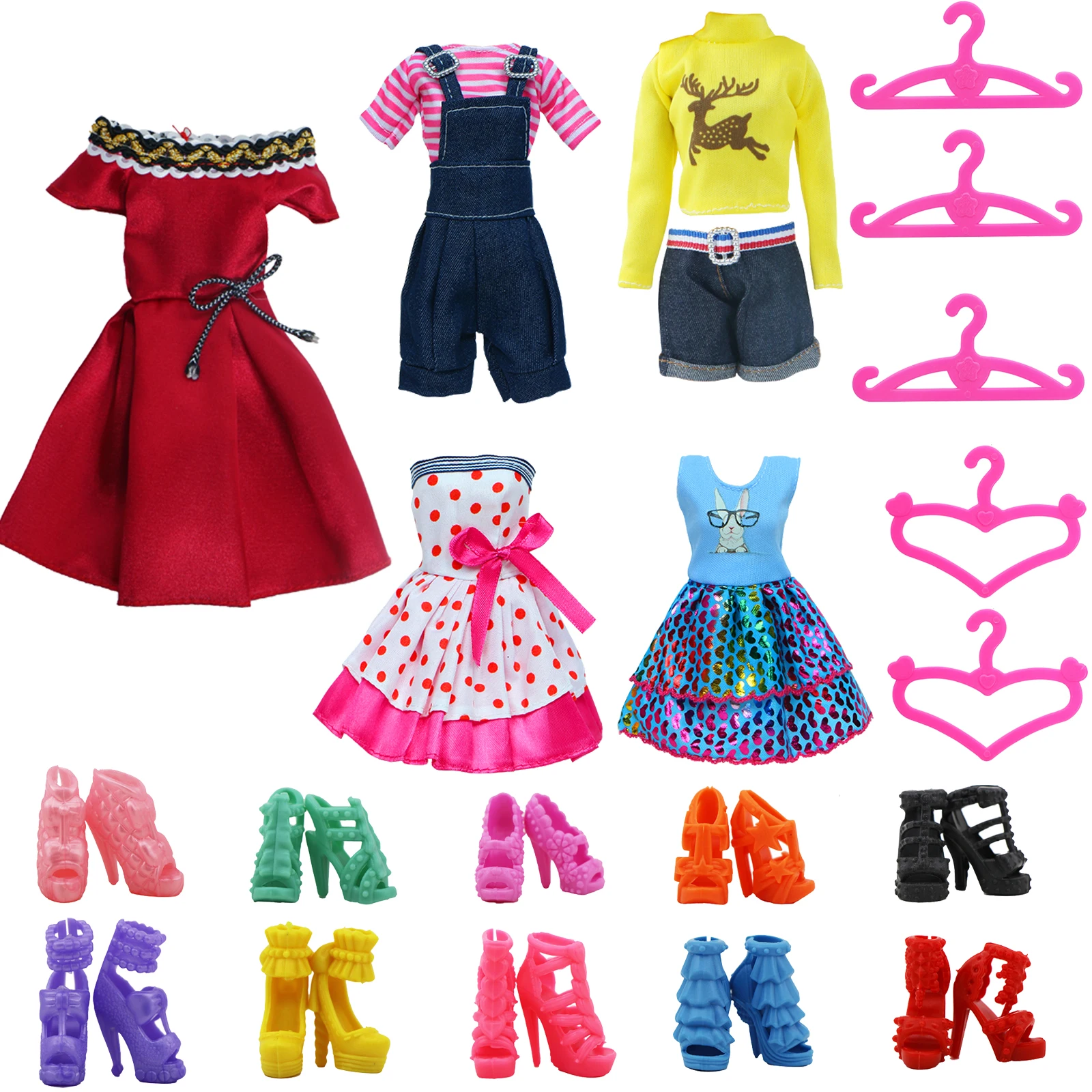 5x кукольные наряды5x кукольные вешалкиСлучайные 10х кукольные туфли