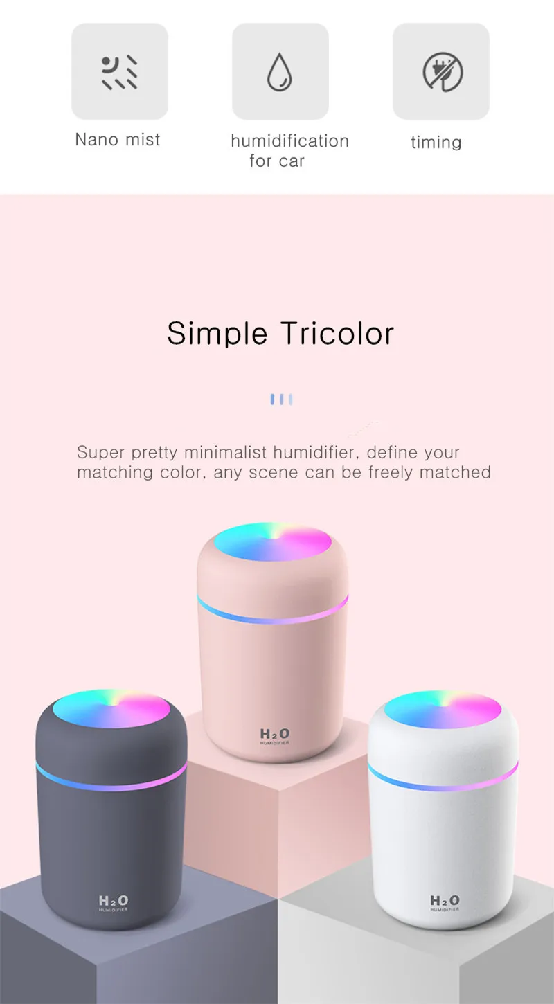 Портативный Электрический увлажнитель воздуха 300 мл, аромадиффузор...
