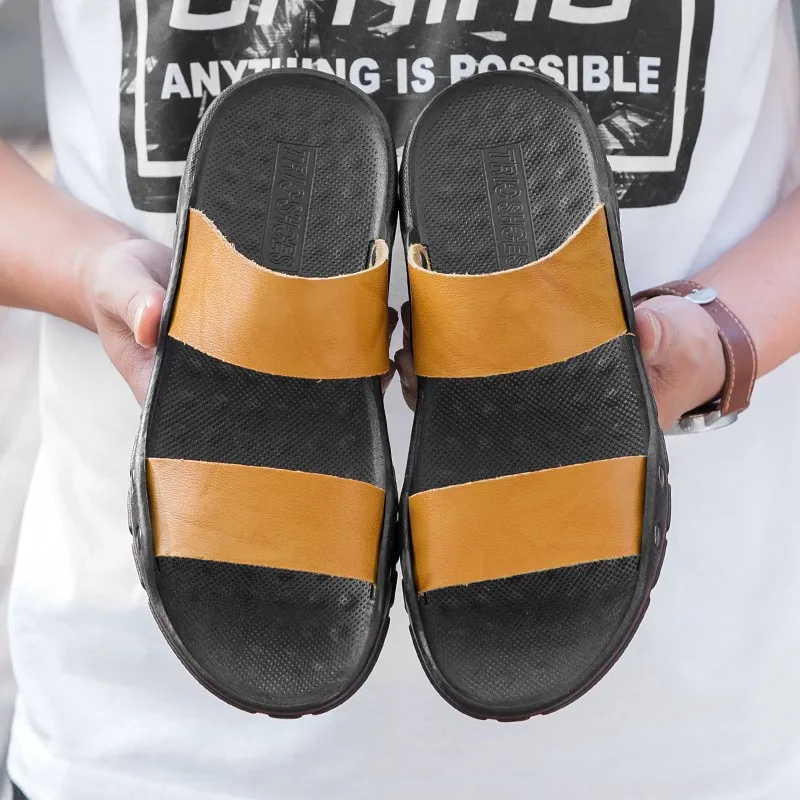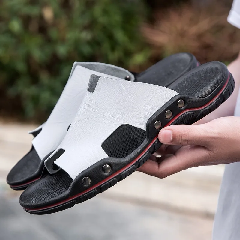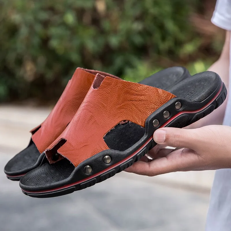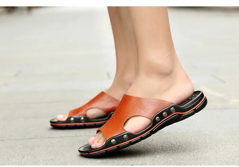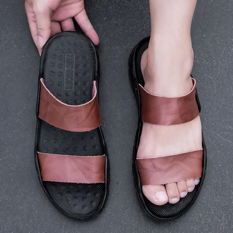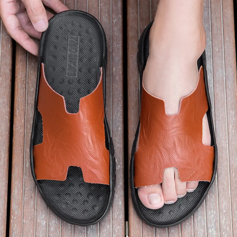 Шлепанцы мужские из натуральной кожи, летние, дышащие, без шнуровки, 48, 47