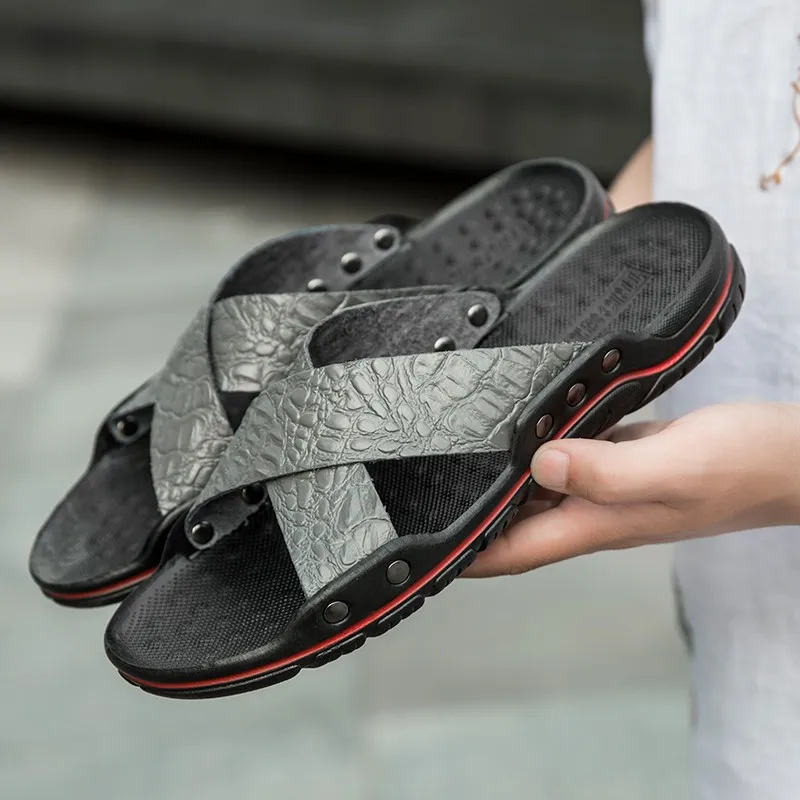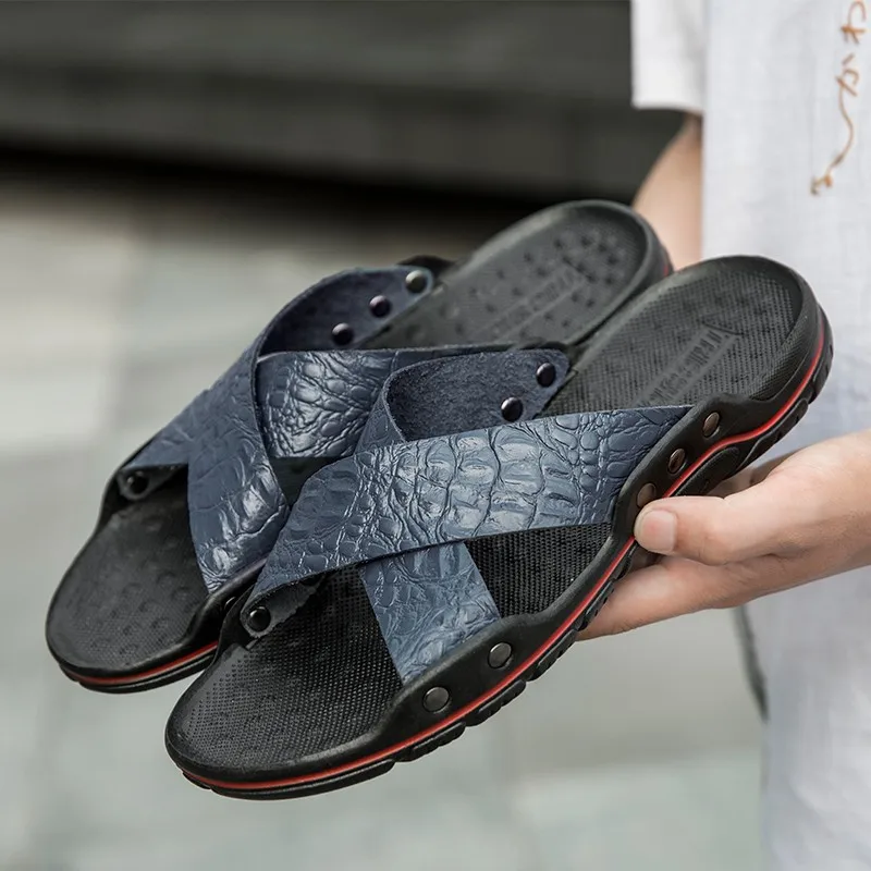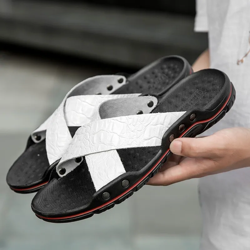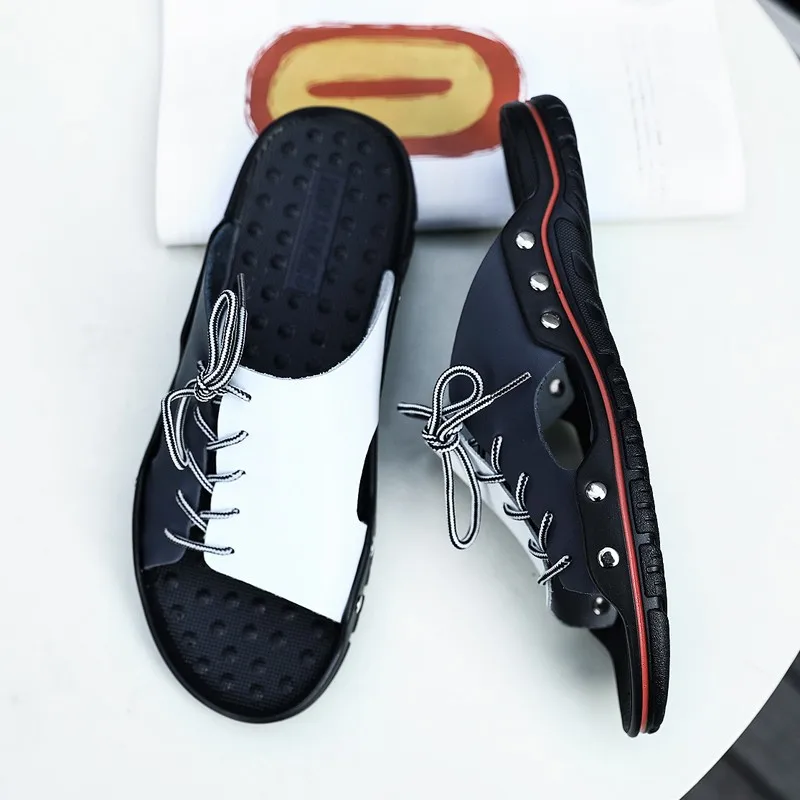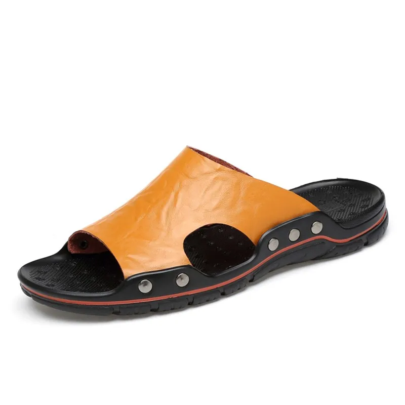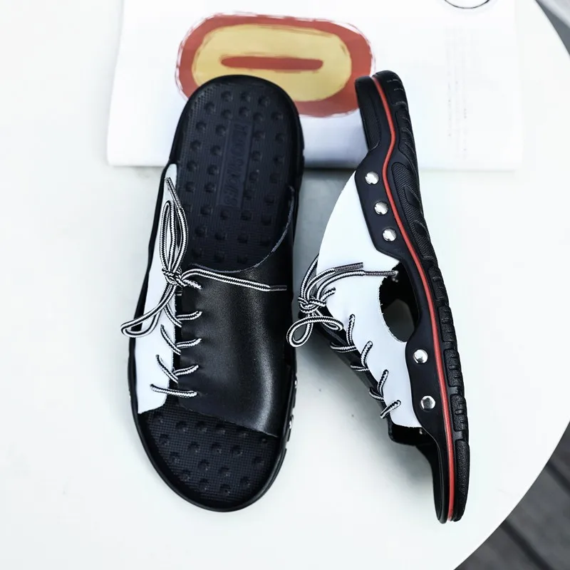 Шлепанцы мужские из натуральной кожи, летние, дышащие, без шнуровки, 48, 47