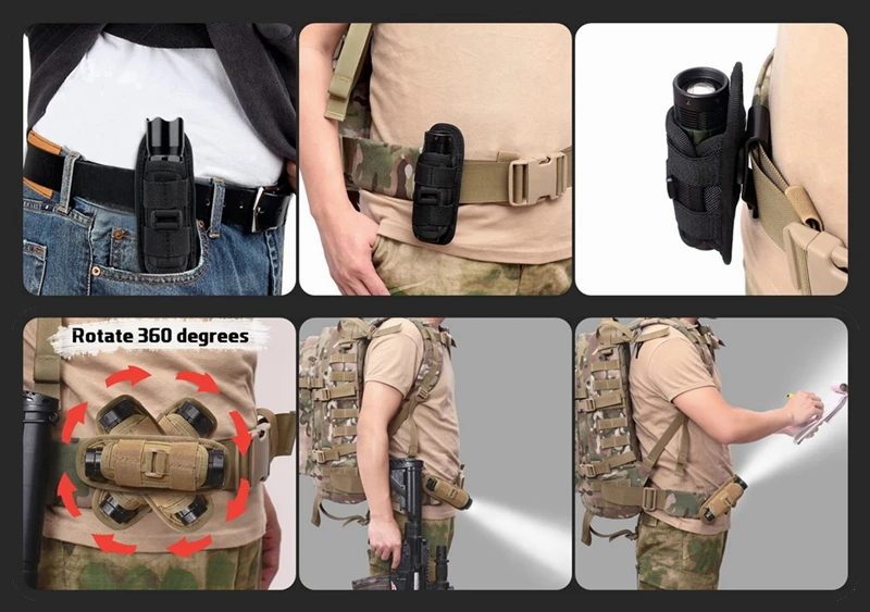 Тактический чехол для фонарика Molle, чехол с держателем фонарь ря, вращающийся на 360 градусов, кобура для EDC ножевой фонарик, аксессуары для охоты