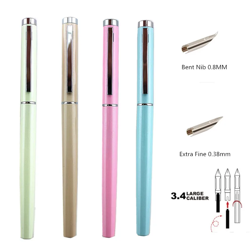 Роскошная Высококачественная перьевая ручка изогнутое перо 0,8 мм сверхтонкие чернильные ручки 0,38 мм Высокое качество школьный офис имя подарок Канцтовары