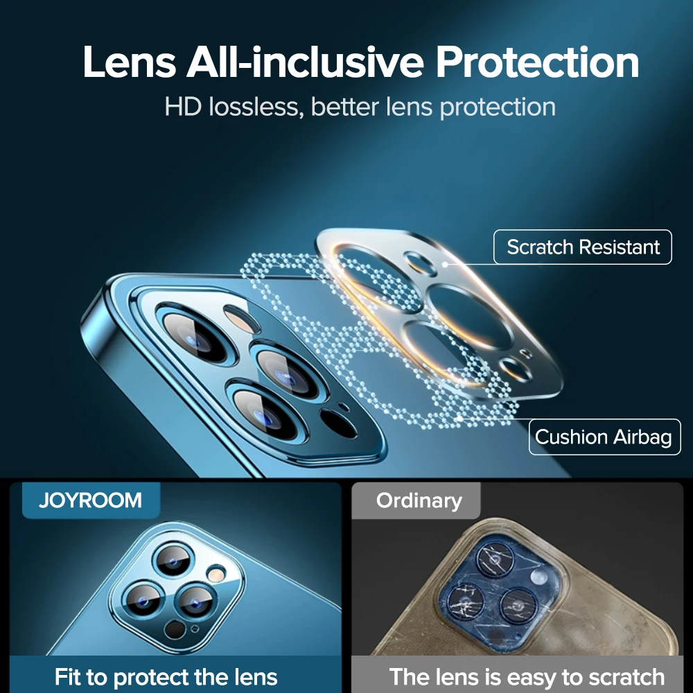Больше подходит для iPhone12 серии Чехол JOYROOM 1. Точно защищает объектив 2. Встроенная невидимая подушка безопасности против падения 3. Не оставляет отпечатков пальцев Обычный чехол 1. Блокируйте объектив и размывайте фотографию 2. Нет защиты, повреждения телефона 3. Некачественный материал, легко желтый