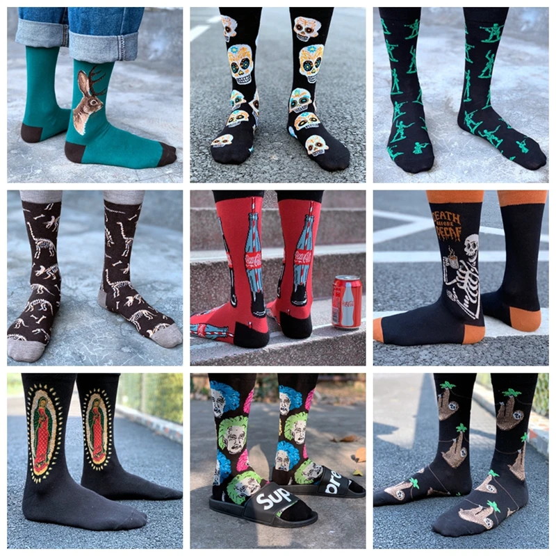 Носки мужские хлопковые в стиле Харадзюку, с забавным принтом, с из...