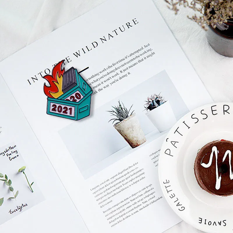 2021 большая мусорная корзина 2020, забавный мем для горения, булавка для лацкана, брошь на булавке в виде дьявола смерти, мусорного ведра, мусорного пожара, значок