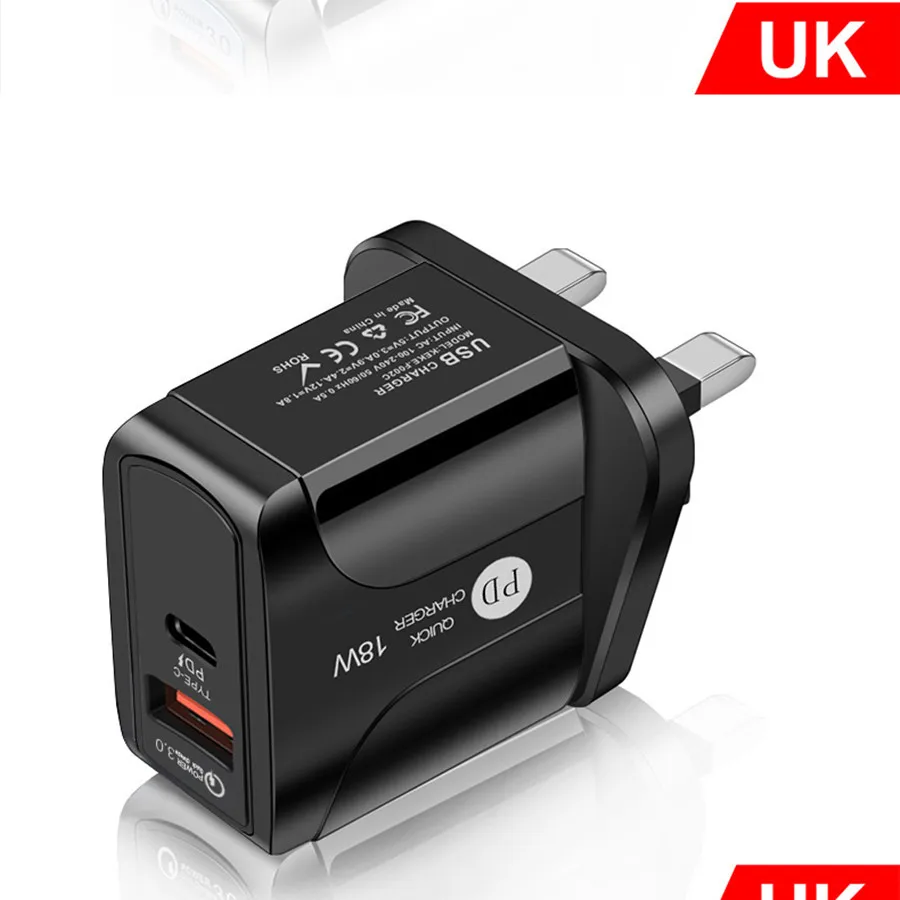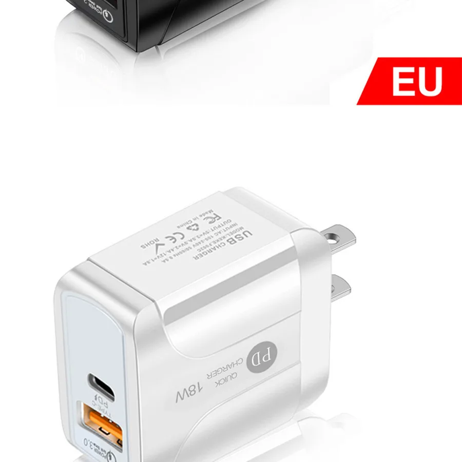 (Двойной порт) Type-C + USB:18 Вт Быстрая зарядка каждого порта