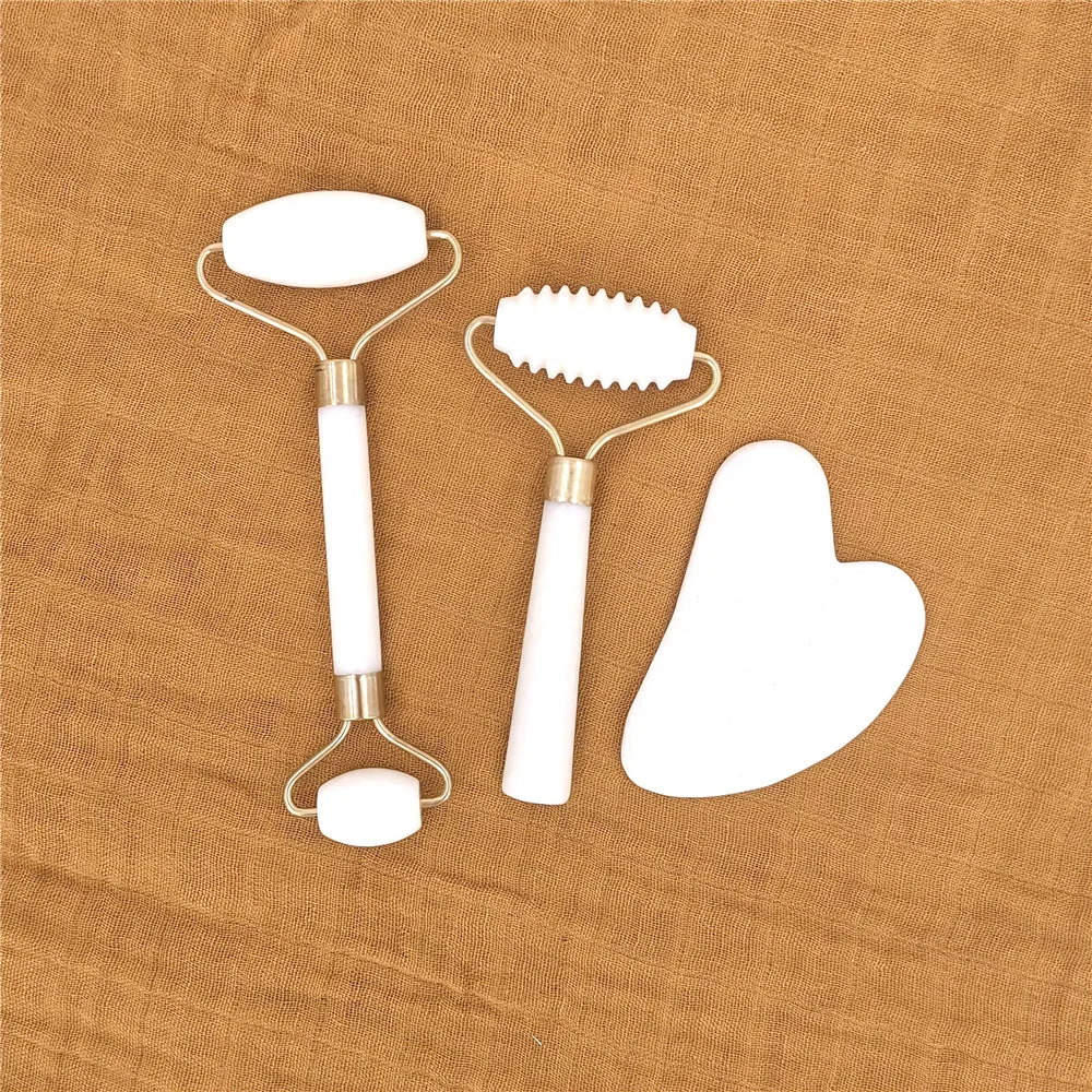 Новый Белый Нефритовый камень для массажа натуральный кварцевый скребок нефритовый ролик Гуаша набор для подтяжки белого лица массажер для лица инструмент для спины