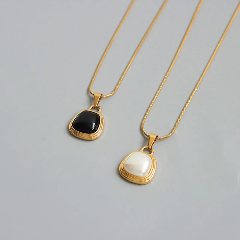 GHIDBK эффектные Роскошные Имитация Жемчуга черно-белые геометрические формы, кулон, ожерелье, минималистичный модный дизайн воротника чокерыМатериал: нержавеющая стальОсобенности: изысканные ожерелья, очаровательные овальные Геометрические Чокеры, простые современные воротники, модные ювелирные изделия, подарок для женщин