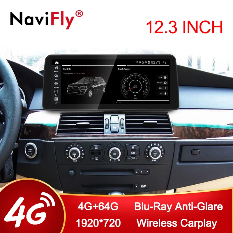 Автомобильный мультимедийный плеер NaviFly Android 10,0 для BMW 5 серии E60 E61 (2004-2010), маска, система CCCCIC, Carplay + Auto DSP 4G LTE