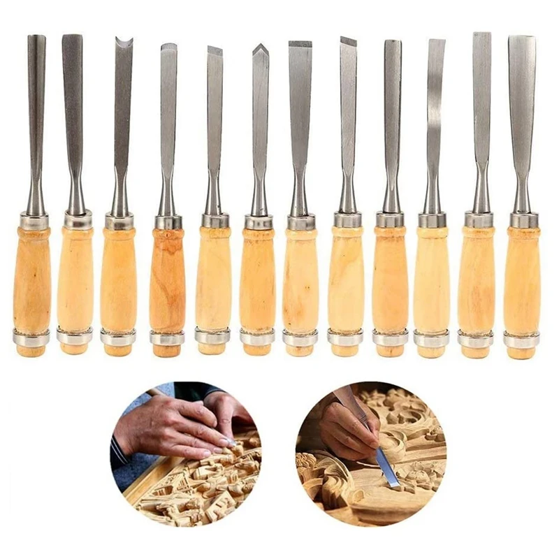 12 шт., ручное долото из углеродистой стали для резьбы по дереву