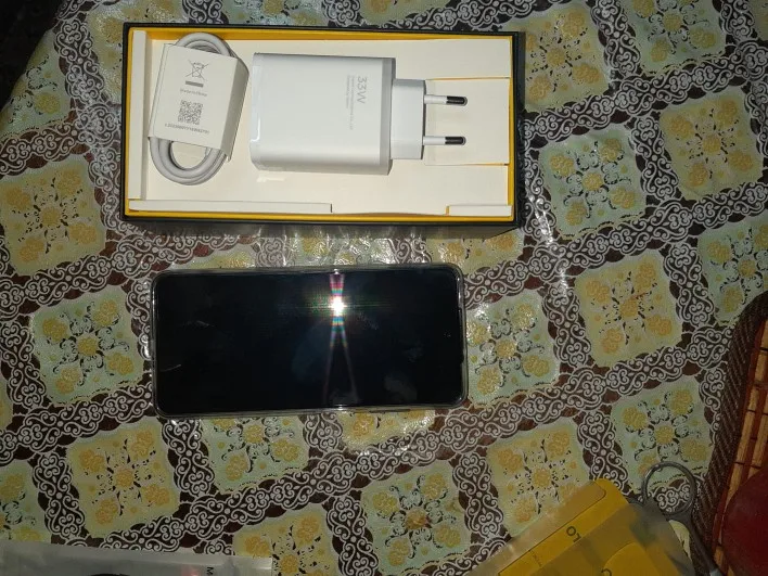 внутренний пакет из пупырки был протерт до дыр на углах, из-за чего и сама коробка с телефоном была повреждена по углам да ещё и помята посередине. сам телефон цел. в комплекте прозрачный чехол, зарядное на 33 ватта и наклеенная на экран пленка (на первое время сойдёт). шел до брянской области 2.5 недели. на почте при получении пришлось заплатить пошлину 52 рубля. покупал на 29 ноября. с учётом промокодов, кэшбек сервиса и кэшбека по банковской карте вышло около 16500. неплохо за такие характеристики. в днс такой стоит 27000