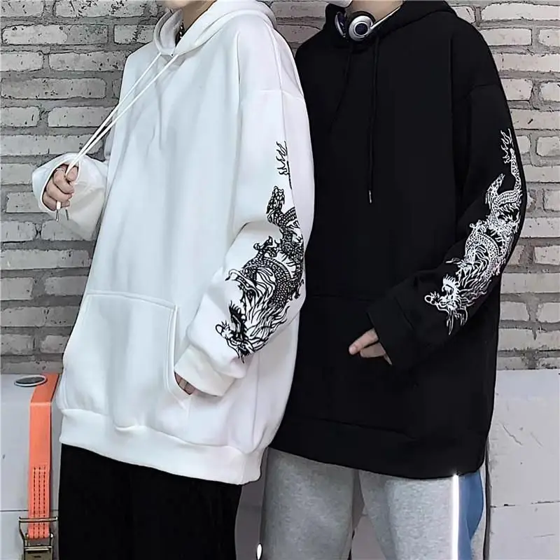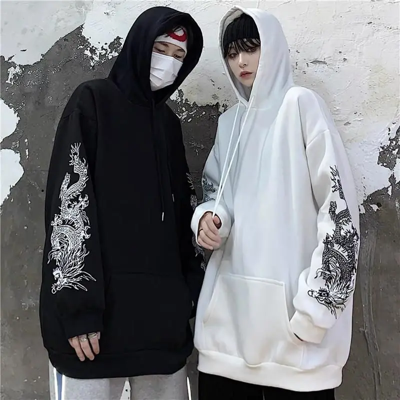 Мужская и женская куртка с капюшоном и аппликацией китайского дракона