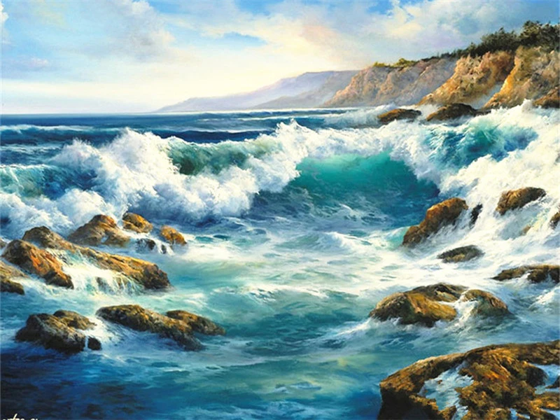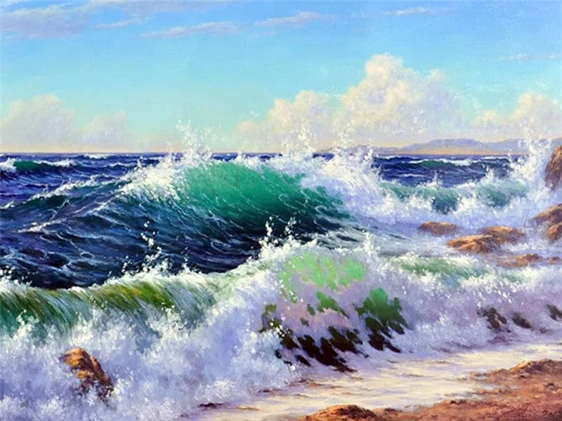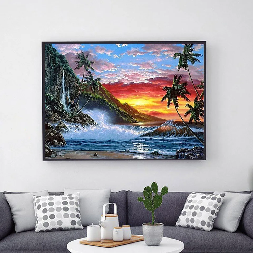 Алмазная живопись, волны, камень, ландшафт, квадратные алмазы, круглые алмазные украшения, настраиваемое настенное искусство, украшение без рамки