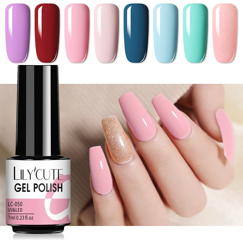 Гель-лак LILYCUTE, 7 мл, блестки для ногтей, перманентный, розовое ...