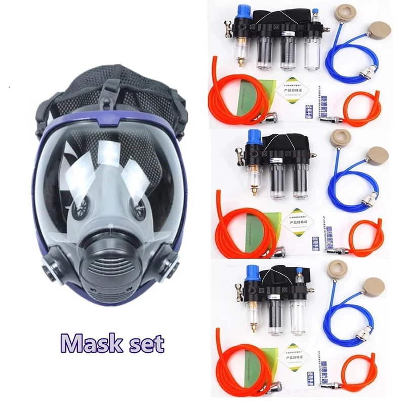 Таким образом, вашему воздушному компрессору не нужен сепаратор масляной воды, когда вы используете этот набор подачи воздуха. Воздух от воздушного компрессора, который находится в среде, свободной от загрязнения. Таким образом, он позволяет избежать прямого контакта с ядовитым газом, в корне решает проблему дыхания. Кроме того, вам не нужны картриджи и хлопковые фильтры, и вам также не нужно менять их, когда они не работают. Маска при использовании внутреннего образования положительного давления, что делает внешние токсичные газы не входят, маска для сохранения внутренней циркуляции воздуха в то же время, решить туманную среду трудно дышать и пот! Этот набор обеспечивает безопасность и удобство.