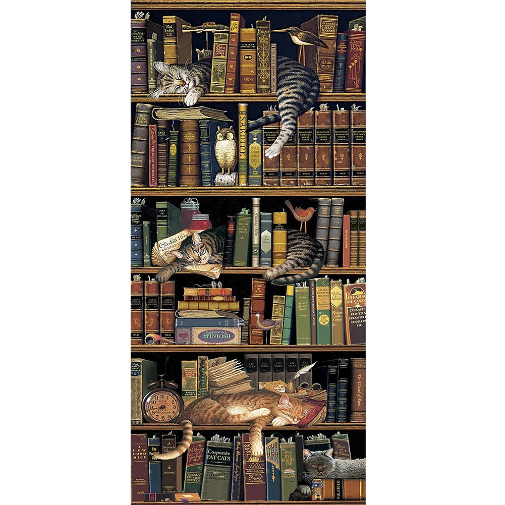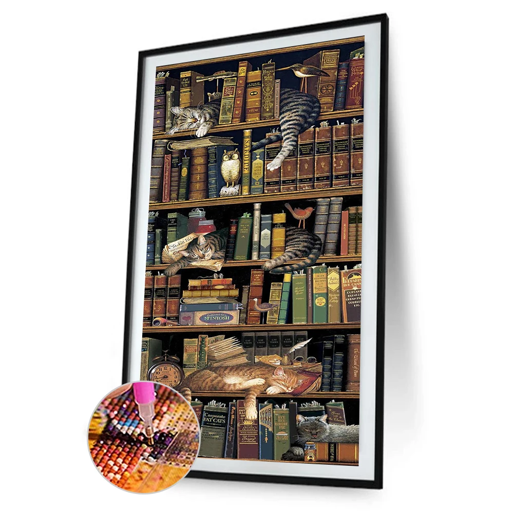 Алмазная живопись 5D сделай сам, 40 х60 см, книжный шкаф с котом, Круглая Мозаика, настенное искусство, картина стразы, украшение для дома