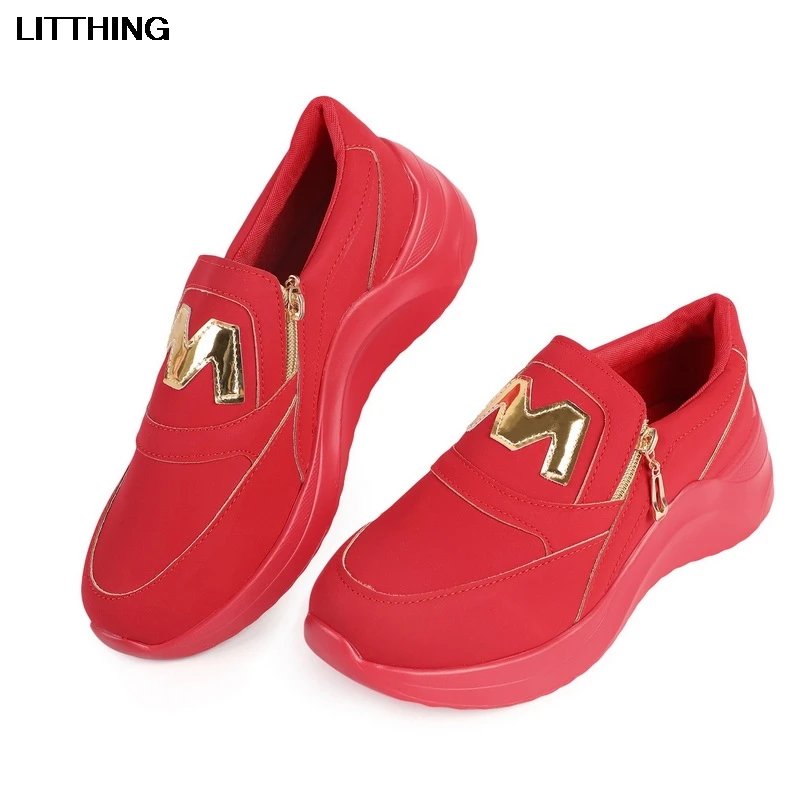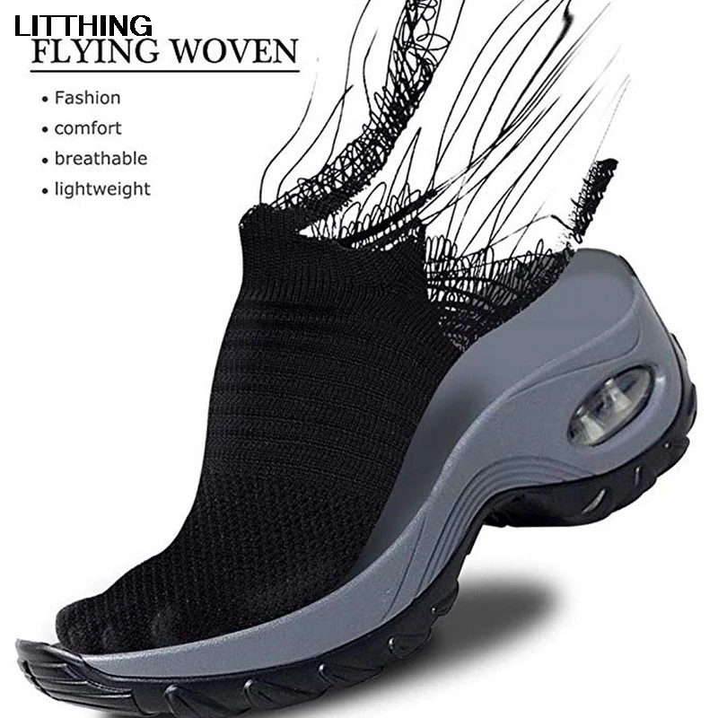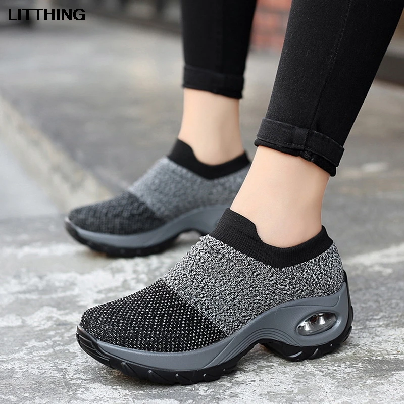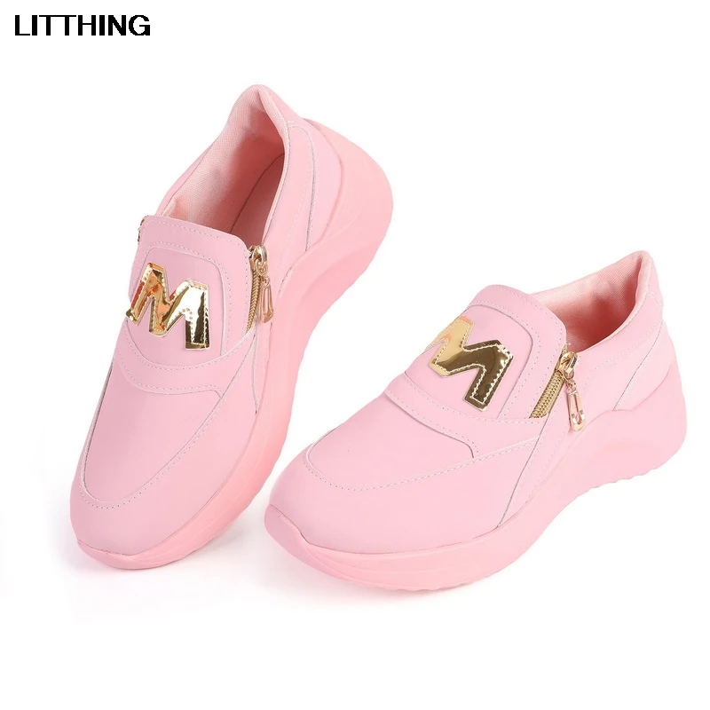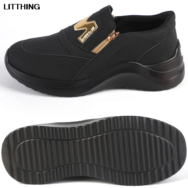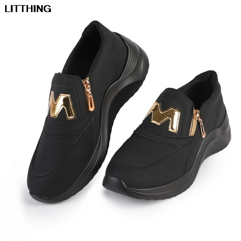 Женские кроссовки на танкетке Litthing, Весенняя черная обувь на толстой платформе, на молнии, нескользящая Повседневная Корейская женская обувь с вулканизированной подошвой