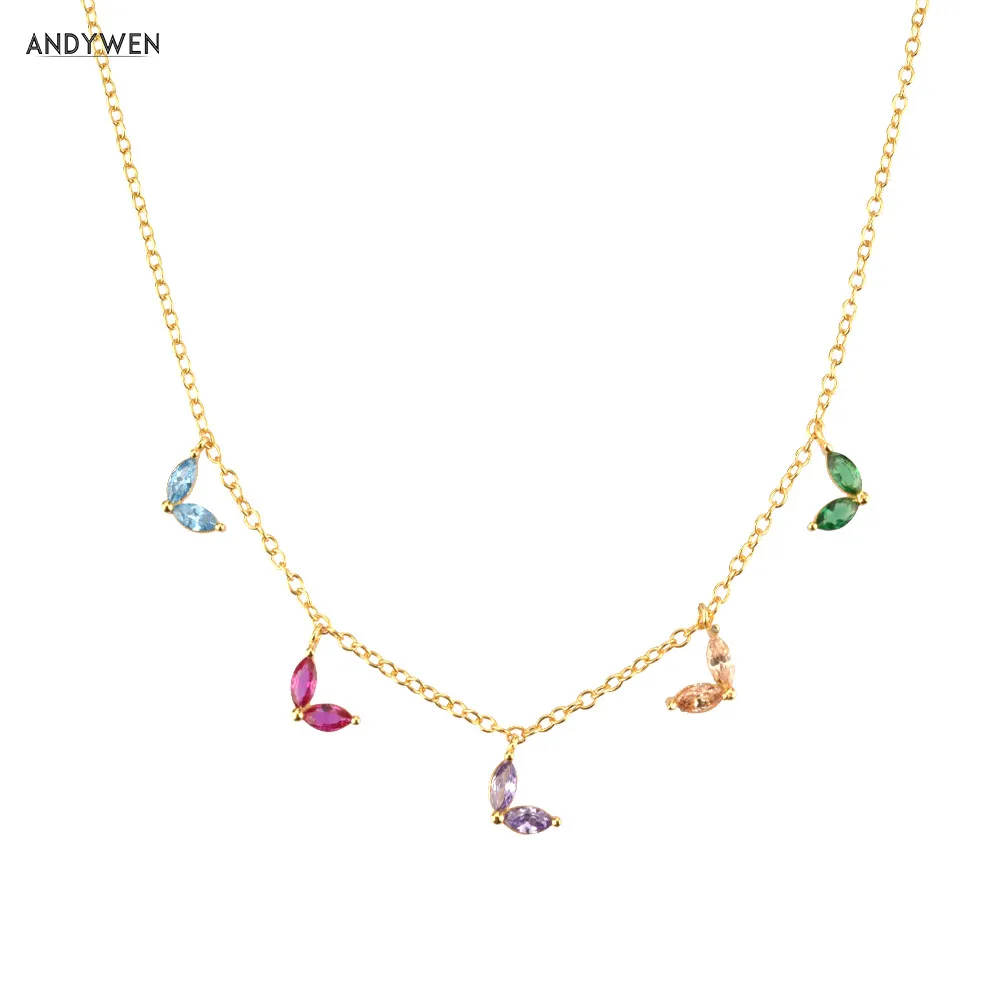 Ожерелье ANDYWEN из стерлингового серебра 925 пробы с золотым овальным цирконием, ожерелье с цепочкой 40 см, женское изящное ювелирное изделие, подарок, кристалл, рок, панк