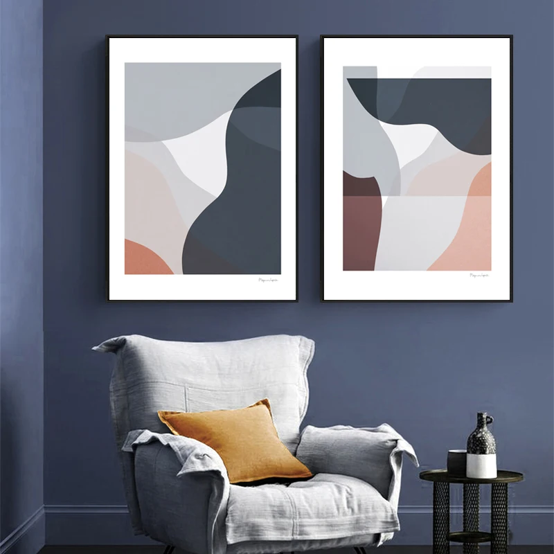 Скандинавский абстрактный синий постер и печать розовый телесный хо...