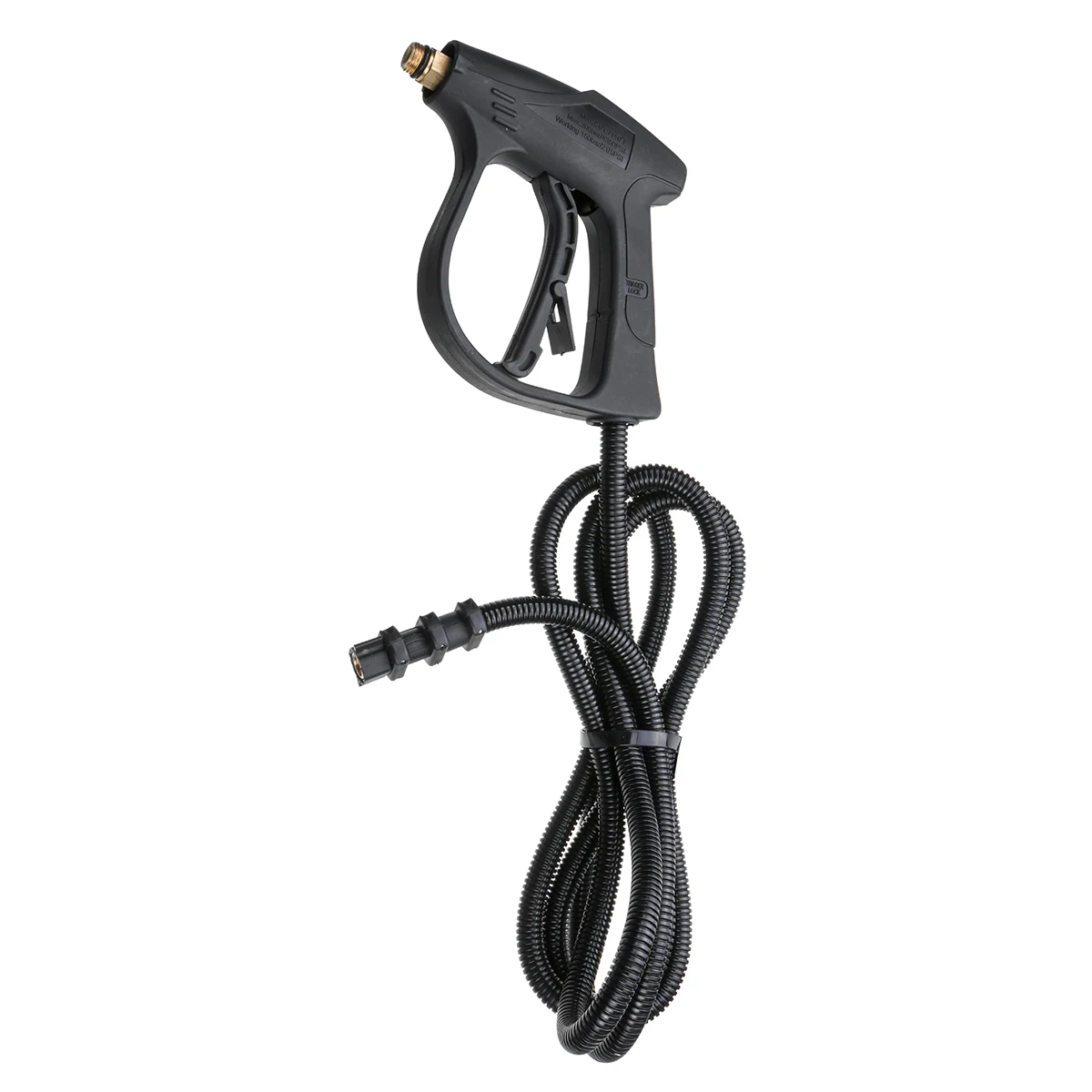 Спецификация:Наименование: пароочиститель высокого давленияМатериал: пластик и металлРазмер машины: 19x8x12cmДлина впускной трубы: 1,0 мМощность кабель Длина: 1,8 мПаропровод Длина: 2,5 мНапряжение: 220 ВМощность: 2600 ВтРасход воды: 100-200 мл/мин.Давление пара:>5KGF/CM2Рабочая температура: >100 ℃Применение: легко удалить масло, пыль, дезинфекция, 360 ° всесторонняя Чистка