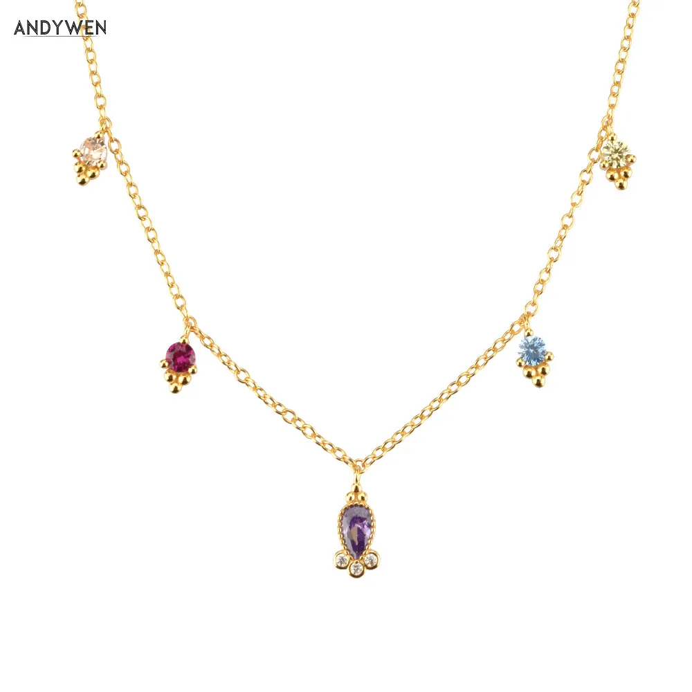 Очаровательное ожерелье ANDYWEN из стерлингового серебра 925 пробы с золотистым кулоном 40 см цепочка ожерелье 2021 Радуга CZ роскошный женский свадебный подарок ювелирные изделия