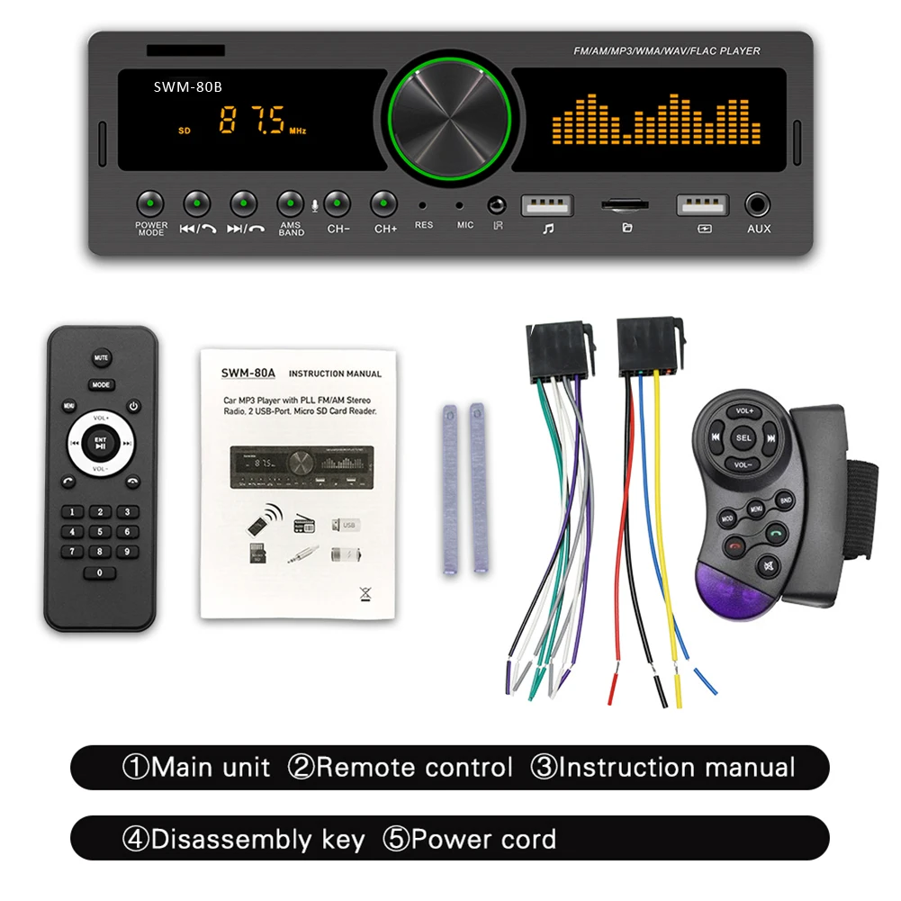 Автомобильный MP3-плеер SWM 80A 1 DIN с двумя дисплеями, USBFMTFAUX...