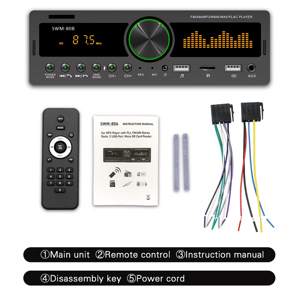 SWM-80B 1 DIN автомобильное радио двойной экран Multimeida MP3 плеер аудио копия Bluetooth-совместимый TF USB AUX-вход