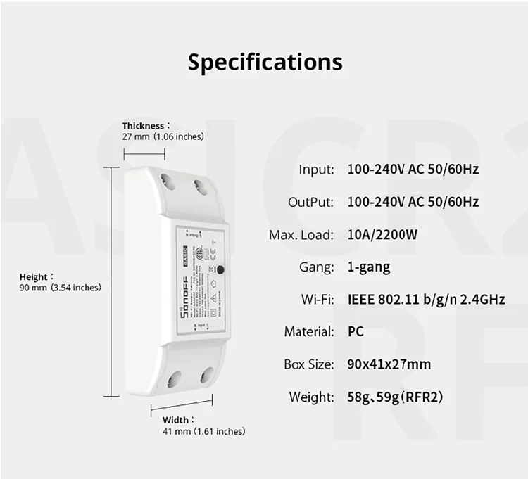 Номер моделиSONOFF RF 433Mhz WiFi Switch